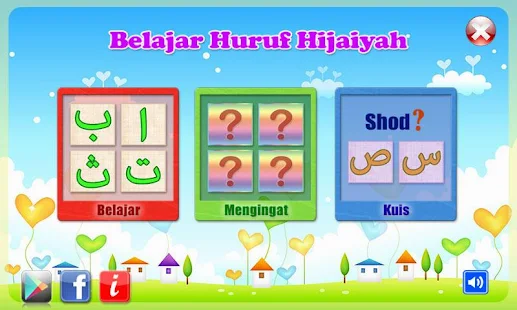 * Permainan mengingat huruf hijaiyah dengan berbagai tingkat kesulitan.